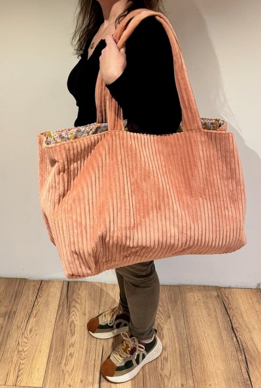 Ce sac est en velours côtelé avec un coton fleuris à l'intérieur
